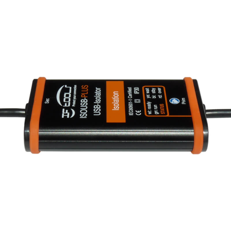 The scope of delivery includes the certified USB Isolator ISOUSB-PLUS-CABLE with integrated 90cm USB cables on both sides and a 16 pages manual in German and English. Made in Germany according to high production standards and comes with a warranty of three years.
