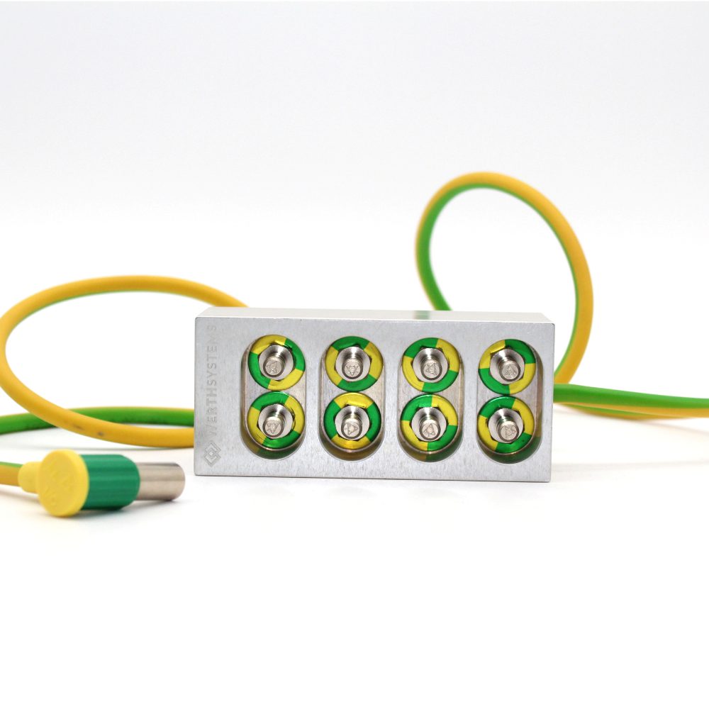 PETE Potential Equalization Terminal for eight devices in a monobloc aluminum housing, available in different variations with cable or pin.
