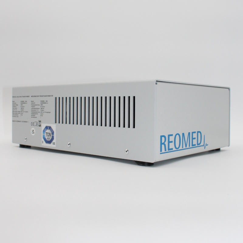 Furthermore, are the TÜV-certified REOMED isolating transformers a proven and reliable equipment for use with all electrical systems in a medical environment, since they reduce the leakage current and thus help to ensure the safety of patients. The REOMED 1000VA A-50W isolation transformer and the other variants are characterized by their very low magnetic stray-fields and reliability, whilst also providing high efficiency and easy connectivity.