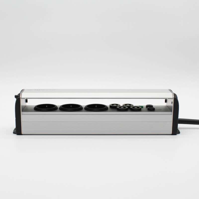 The SLG-3-MED medical power strips are made of a sturdy, anodized aluminum body. The individual plugs are secured by a lockable aluminum protective hood, which prevents each system against unauthorized modification and also protects the socket outlets from liquids, like dripping infusion solutions. The surface can be cleaned very well due to the smooth material properties. The green function control light can also be seen clearly in the closed state and indicates if the power strip is current carrying. A double fuse, one in the neutral line and one in the hot line, guarantees a fast response time and the transparent power plug helps to plug the power strip in phase. Werth Systems Medical Grade Power Strips are available with European CEE7/7 Plugs and Typ F Sockets for the most of the EU-Countries or Typ E Sockets for France, Belgium, Poland, Czechia and Slovakia.